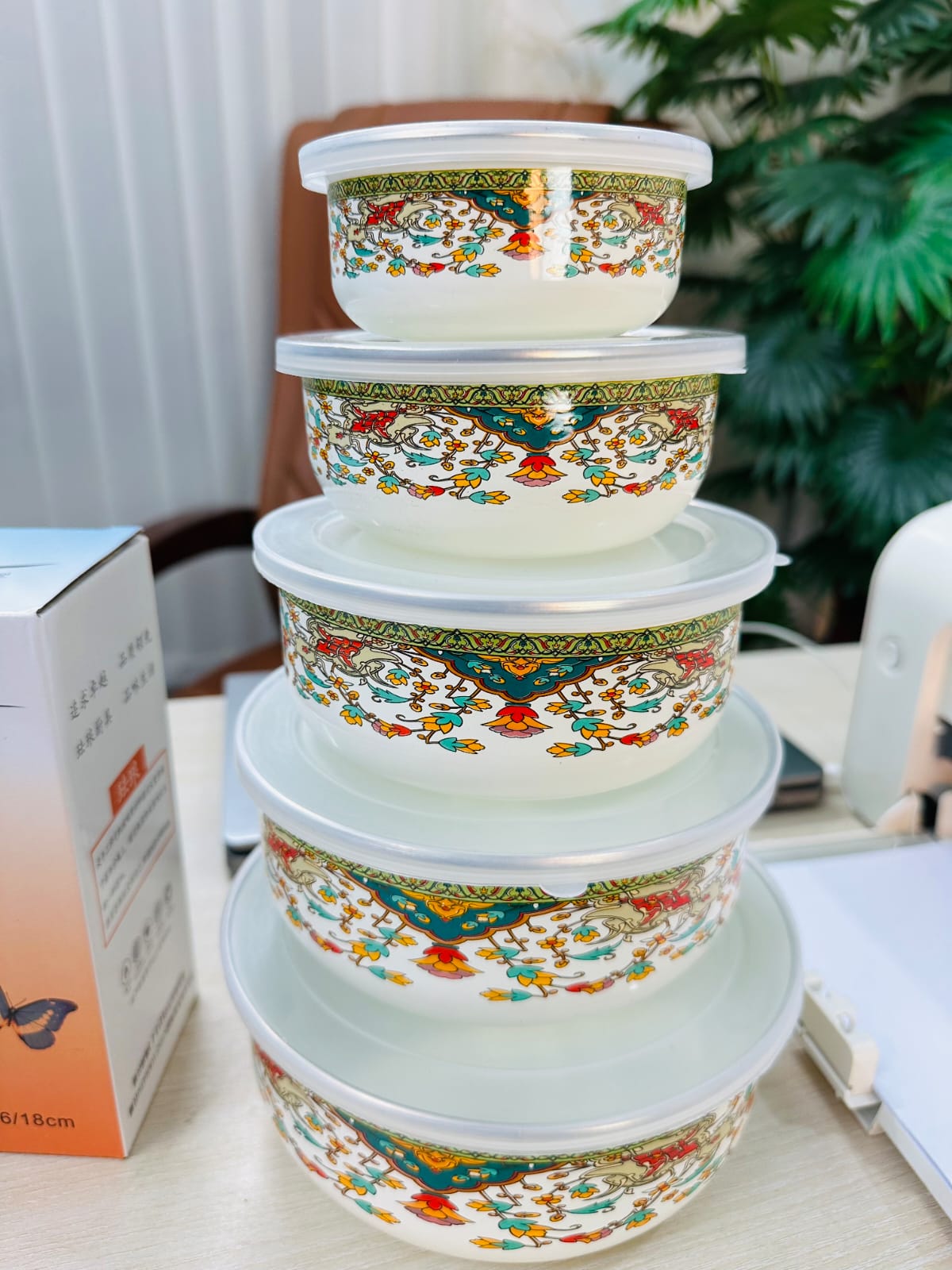 5-Piece Enamel Box Set with Lid Big China print