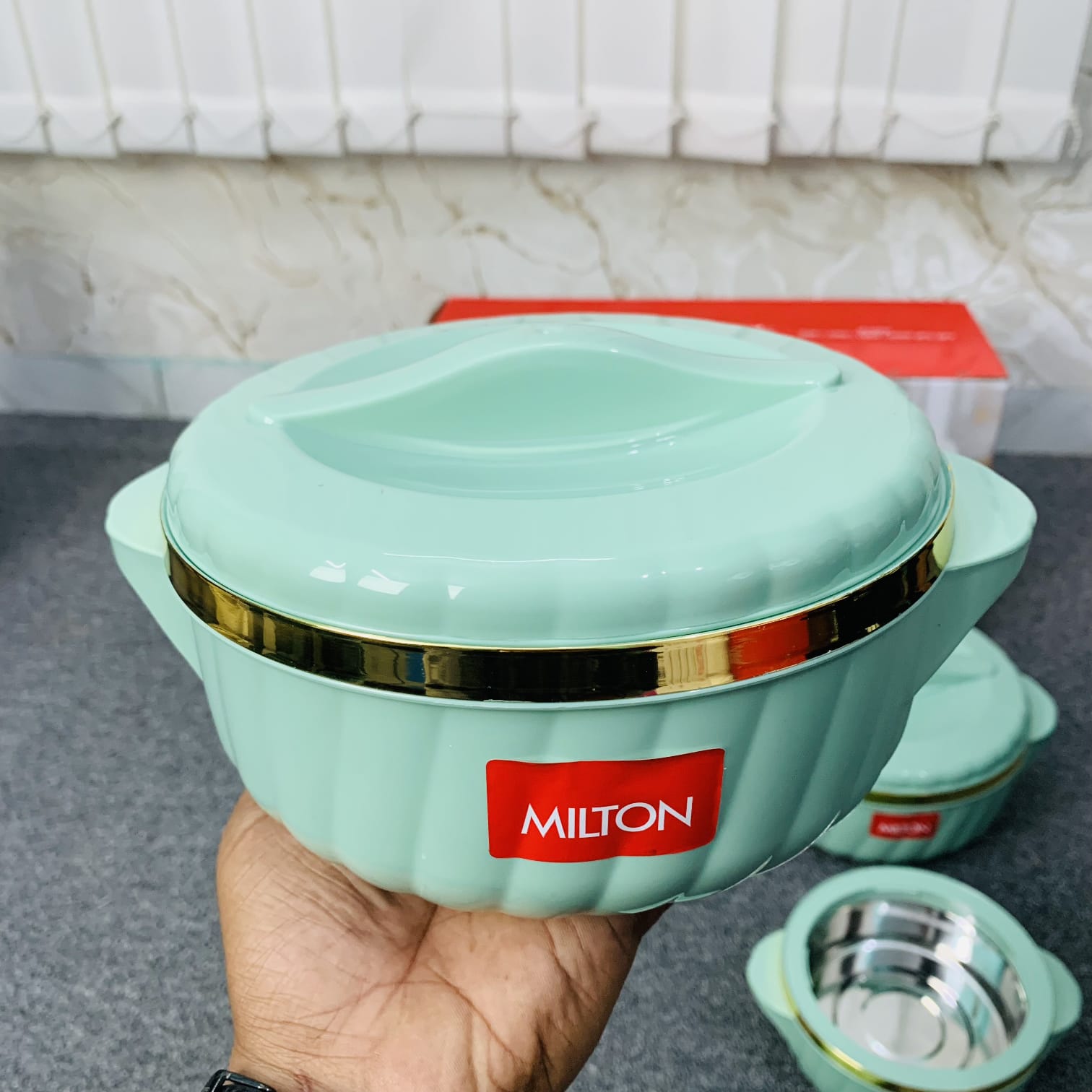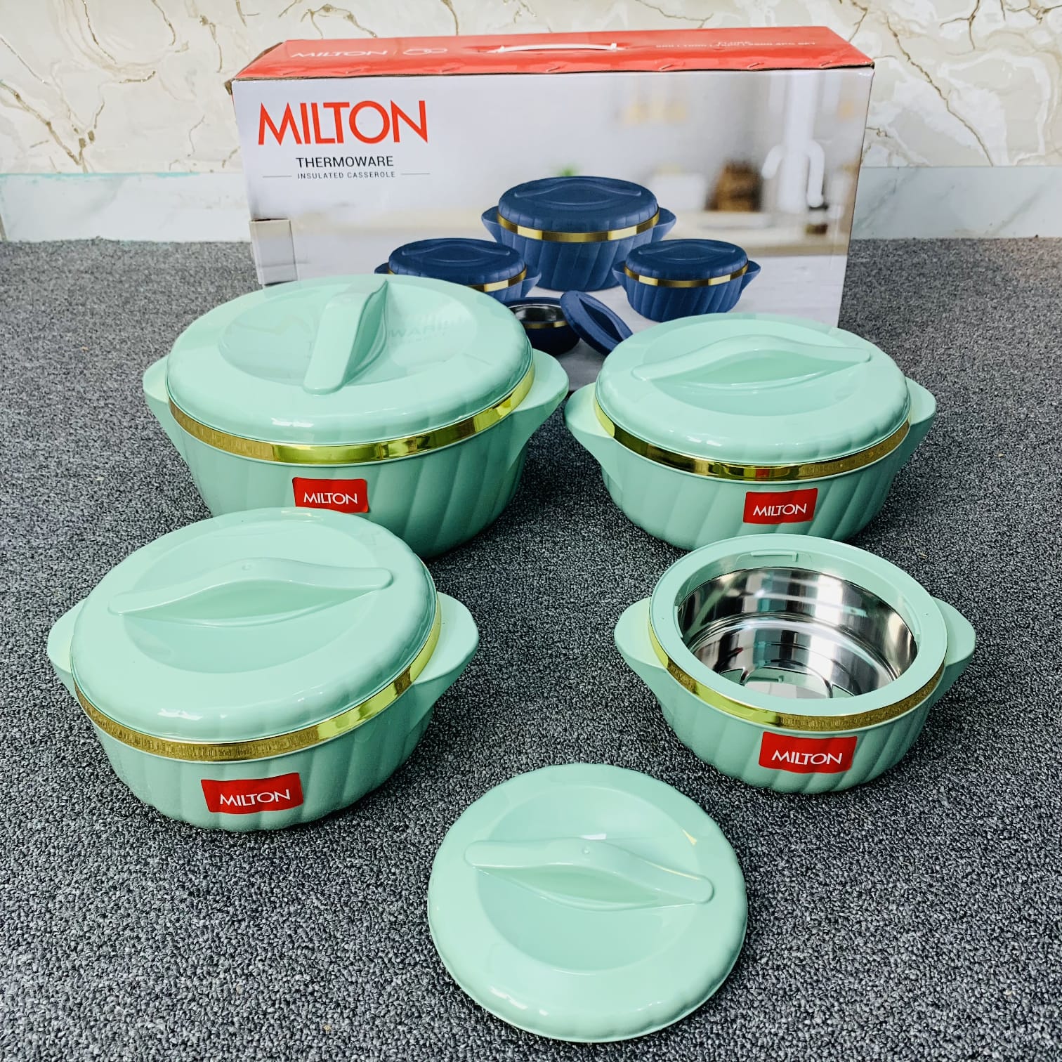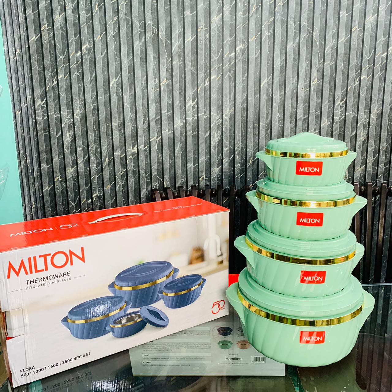 New 4 Pcs Milton Hotpot Set Golden Border (Mint Green)